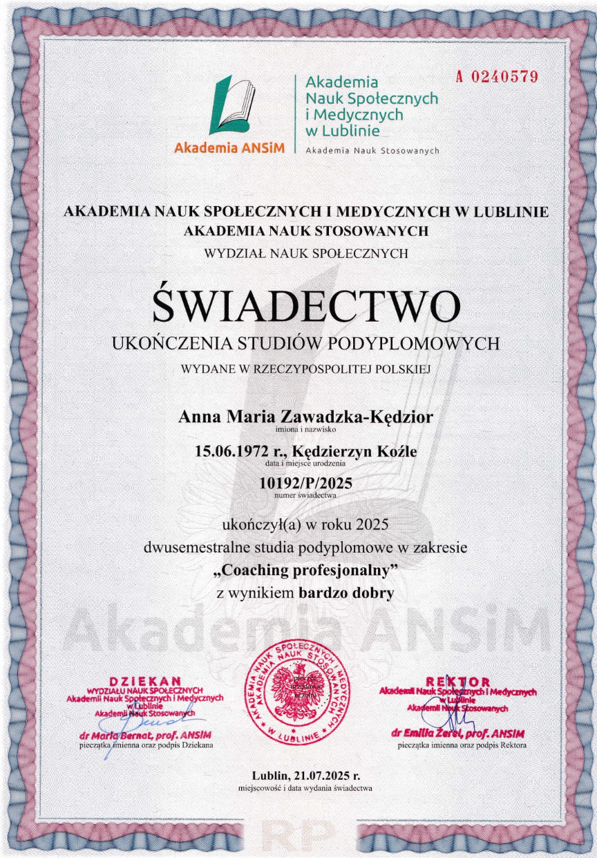 Later, at the University of Lublin, I completed a postgraduate degree in Professional Coaching — another step toward understanding myself not only as a teacher, but as someone who creates spaces where people can rediscover themselves.